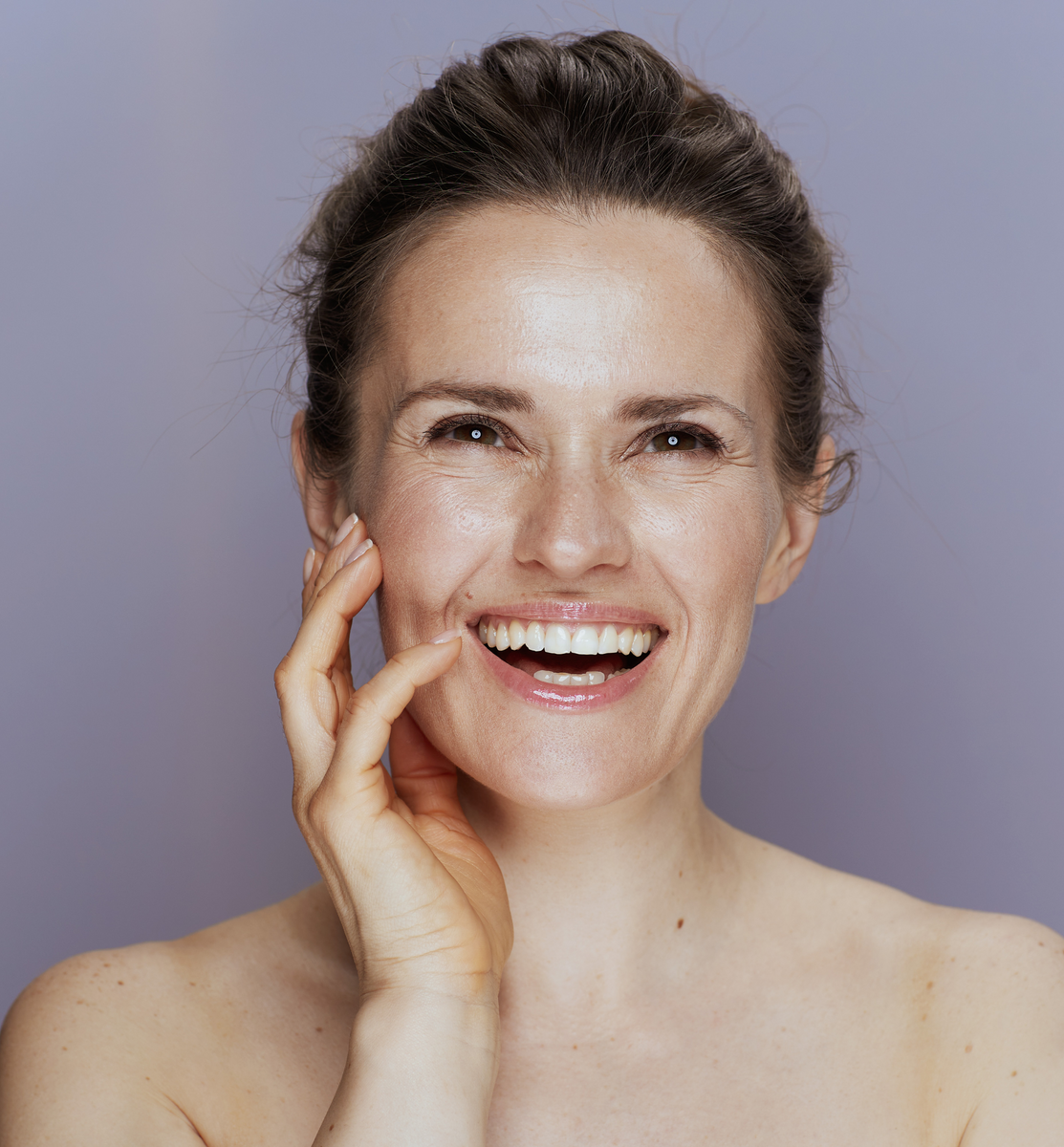 In your 40s, your skin starts reflecting the cumulative effects of aging. As your body approaches menopause, it produces less collagen and elastin than necessary. This leads to a gradual thinning of the skin’s layers as cells shrink, accompanied by a decrease in new cell production. Consequently, the skin becomes rough and dry, contributing to the formation of wrinkles and the deepening of fine lines.
