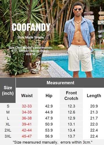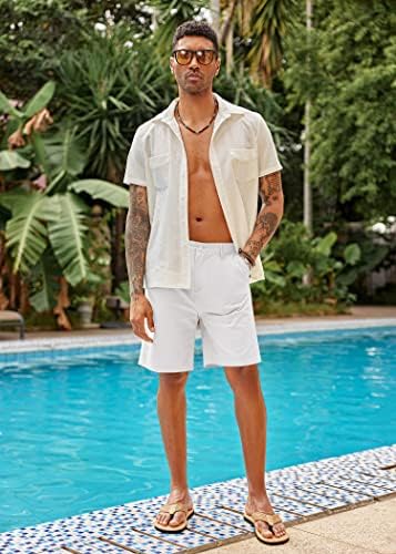 COOFANDY Men’s Casual Shorts Linen Flat Front Shorts Elastic Waist Summer Beach Shorts