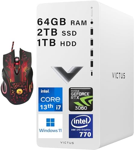 HP Victus 15L Gaming Desktop Computer PC 2023 Newest, Intel Core i7-13700 (16 Cores up to 5.2GHz), NVIDIA GeForce RTX 3060 Graphics, 64GB RAM, 2TB SSD, 1TB HDD, Wi-Fi 6, Bluetooth, Windows 11 Home