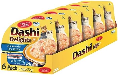 INABA Dashi Delights for Cats, Shredded Chicken with Bonito Flake Broth, 2.5 Ounce Cup, 6 Cups Total, Chicken with Tuna Recipe