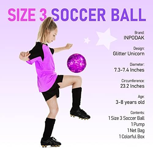 INPODAK Soccer Ball Size 2 Size 3 Cartoon Glitter Ball for Toddler Kids Baby 3 4 5 6 7 8 9 10 Years Indoor Outdoor Soccer Game Great Gift at Christmas Birthday Festival