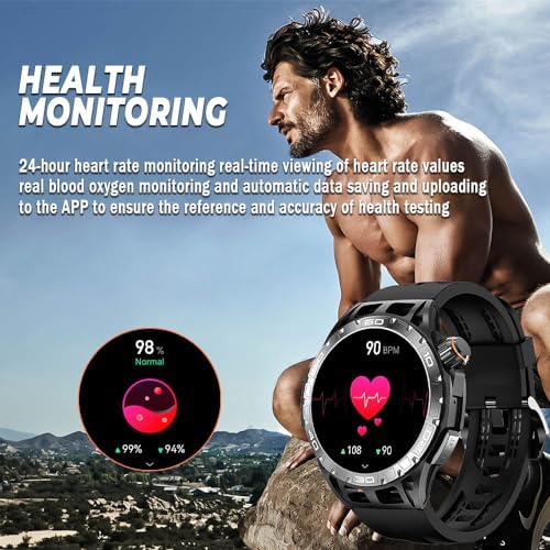 【Military Standard Certification】Adopting special composite material and metal case makes our smartwatch extremely resistant to damage, and it excels in waterproof, drop-proof, dust-proof and smash-proof. It can work in most extreme conditions.IP68 waterproof rating, you can wear it while washing your hands, walking in the rain, swimming or even underwater sports. Even for underwater adventures, it can fulfill all your daily needs. It is the best choice for outdoor sports enthusiasts!