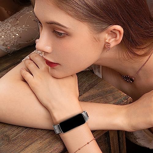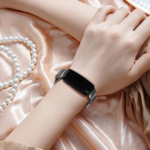 Meliya Compatible with Fitbit Inspire 3 Bands Women Men, Stainless Steel Metal Mesh Loop Adjustable Magnetic Wristband Replacement Straps Compatible with Fitbit Inspire 3 Fitness Tracker