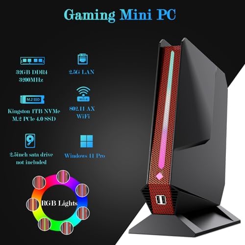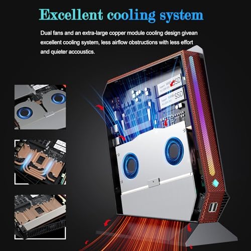 The gaming Mini PC uses High Cooling with a Twin Turbo Smart Fan and copper module Heat Spreader, and mini computer sound under 38 dB. 7 colors rainbow RGB lights show a very beautiful and Cool color effect.