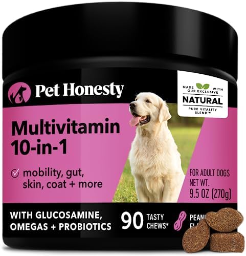 Pet Honesty Dog Multivitamin – 10 in 1 Dog Vitamins for Health & Heart – Fish Oil, Glucosamine, Probiotics, Omega Fish Oil – Dog Vitamins and Supplements for Skin and Coat (Peanut Butter 90 ct)