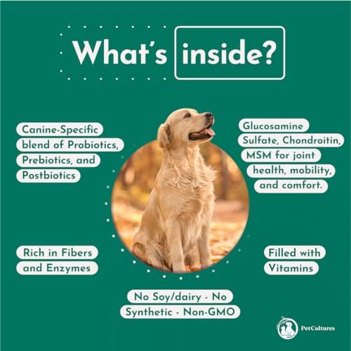 PetCultures Dog Probiotics|Hip And Joint|Glucosamine for dogs MSM Chondroitin|5 Strains 2 Bill |30ct