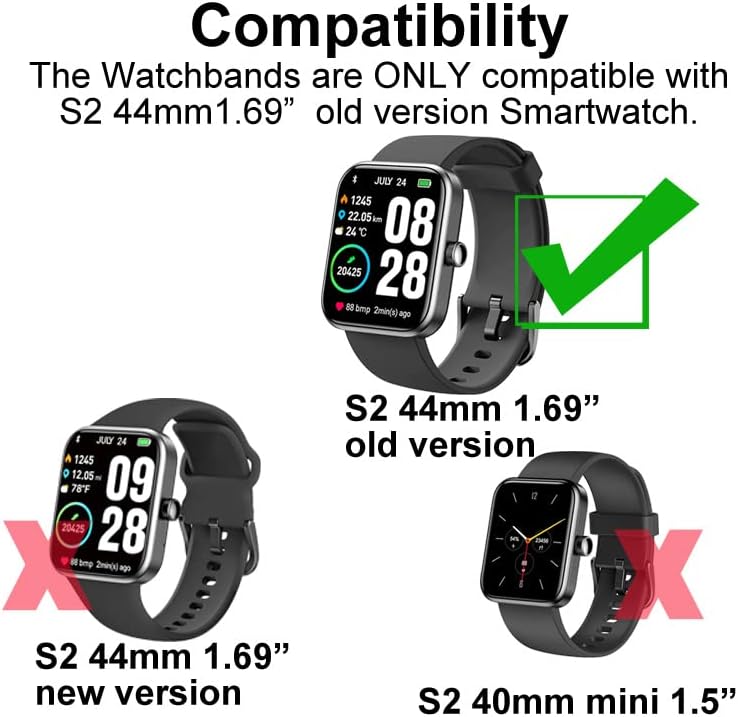 smaate Silicon Watch Band for S2, Compatible with old version TOZO S2 1.69inch smartwatch, Breathable Sport Replacement Strap for Women or Men