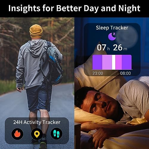 【24/7 Fitness Tracking Watch】This fitness tracker watch comes with the latest motion sensors, providing round-the-clock tracking of your activities. With over a hundred built-in sports modes, it can record and synchronize your exercise paths and data. It automatically tracks your steps, calorie burn, and walking distance during the day. When you’re ready to rest in bed, the watch will automatically monitor your sleep data.