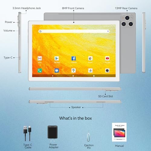 【STORE ALL YOU NEED】10 inch tablet with up to 128GB ROM and 16GB RAM(8GB+8GB achieved through expansion technology) of built-in memory. Store what you want with up to 1TB of storage with a Micro SD card.