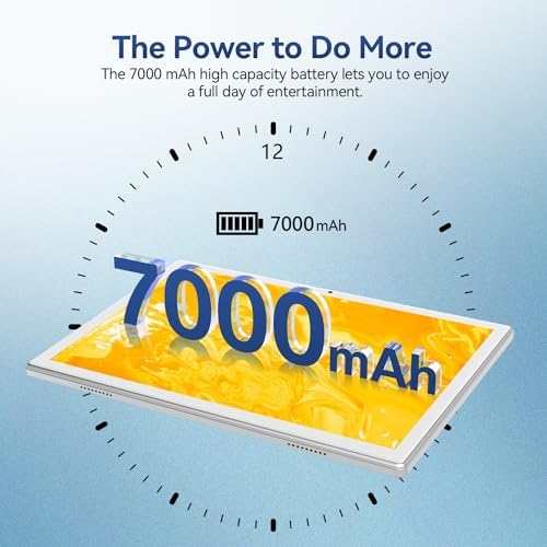 【A BATTERY THAT LASTS】2 in 1 tablet with a large 7000 mAh battery keeps you up to 10 hours whether you are multitasking, watching videos, or playing games. *Battery power consumption depends on usage patterns. Results may vary.