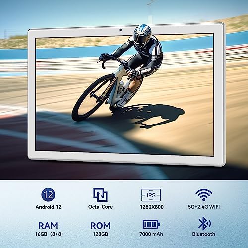 Tablet 2024 Newest, Android 12 Tablet with 128GB + 16GB (8+8 Expand) Large Storage, Tablet with Octa-Core Processor, Tablet 10 Inch Big Screen, 5G WiFi Tablet Bluetooth/13MP Dual Camera/GPS Support
