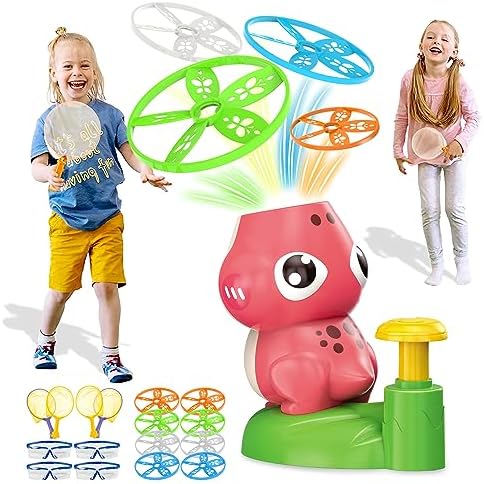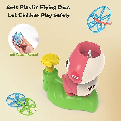 🐸【Safe and Fun Toys for Kids】the flying discs launcher toy set is made of durable, lightweight, flexible, bendable, and impact-resistant materials. The round and soft discs and safety glasses ensure kids’ safety while keeping them active and away from screens.