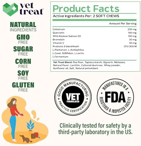 Be the first to review “Vet Treat Dog Allergy Chews – Itch Relief for Dogs – Dog Allergy Relief – Anti Itch for Dogs – Dog Itchy Skin – Dog Allergy Support – Hot Spots – Immune Health Supplement – Made in USA – 120 Treats”